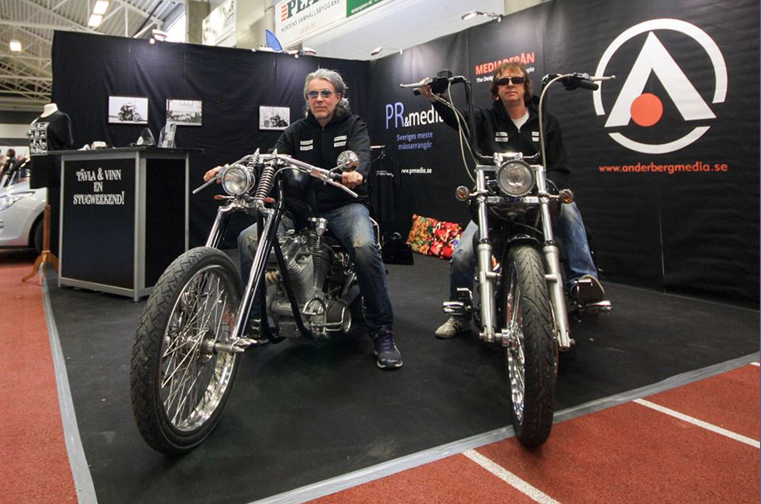Det var Hasse Johansson på PR & Media — Sveriges meste mässarrangör — som frågade om vi ville ha en monter på deras motormässa i Nyköping för ett antal år sedan. Vår idé blev att dela monter, vilket passade perfekt eftersom PR & Media sällan visar upp sig själva i en monter på sina egna arrangemang — helt naturligt när man är arrangören.
